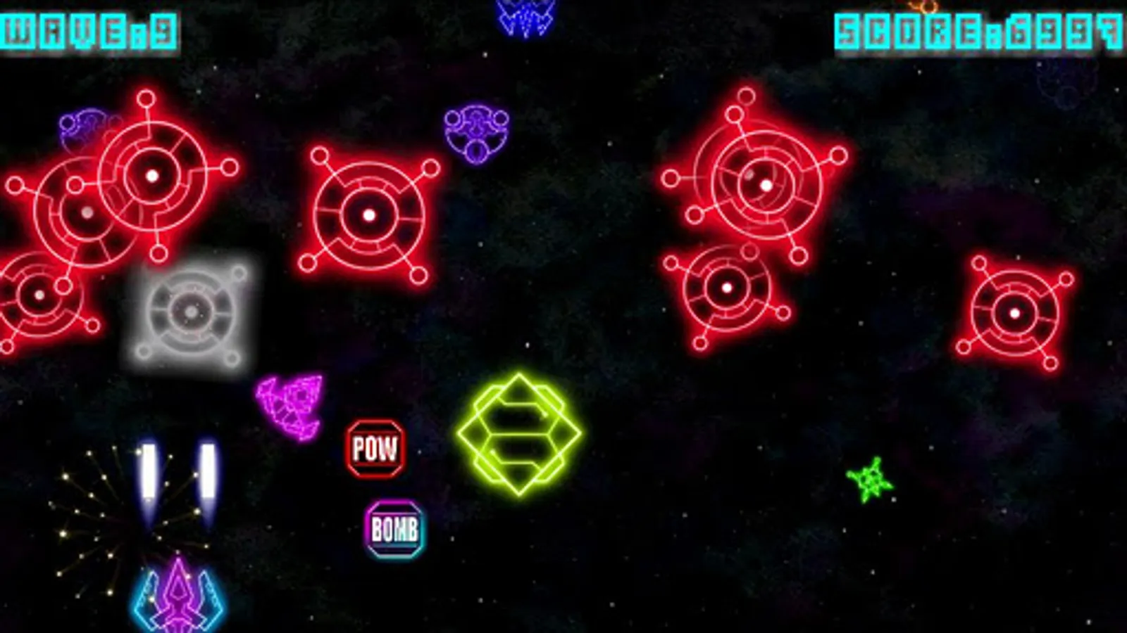 A super addictive neon-style retro arcade space shooter game only for Android!