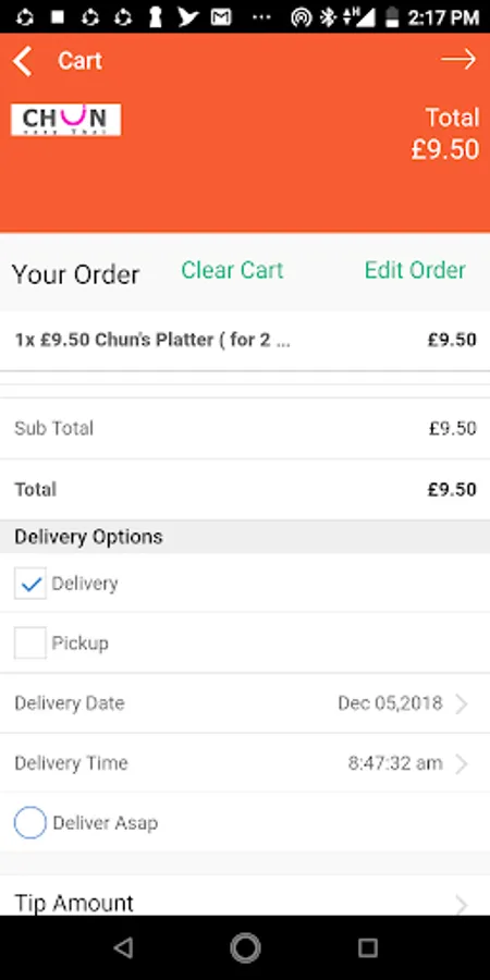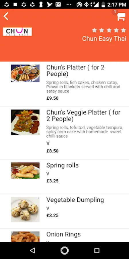 You can even select the food type you are looking for. Browse the menu and make your choice.