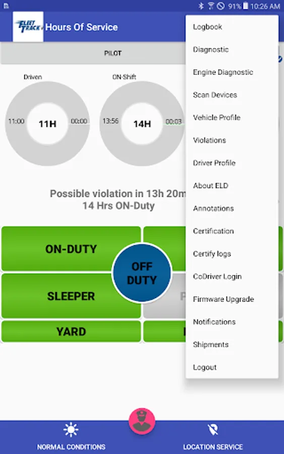 Compliant app to record driver duty status and meet the following regulations: