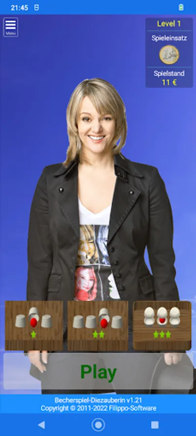 The three cups are moved among themselves at a speed depending on the game stake.