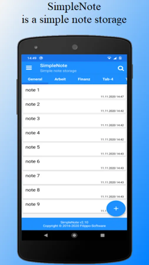 All notes can be categorized in 5 predefined table - the name of the tables can be personalized.