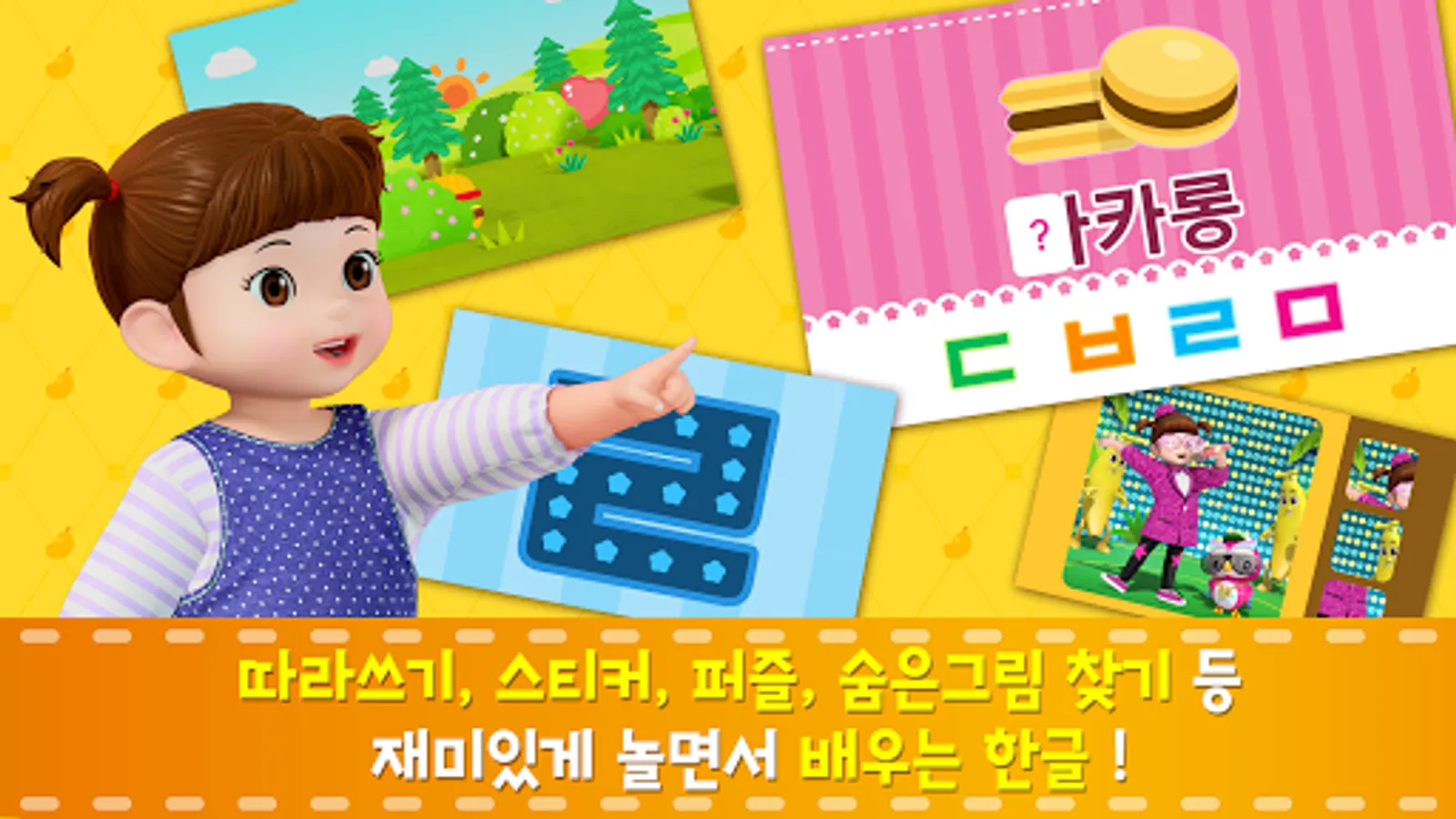 • Learning Hangul through fun games such as writing, stickers, and puzzles