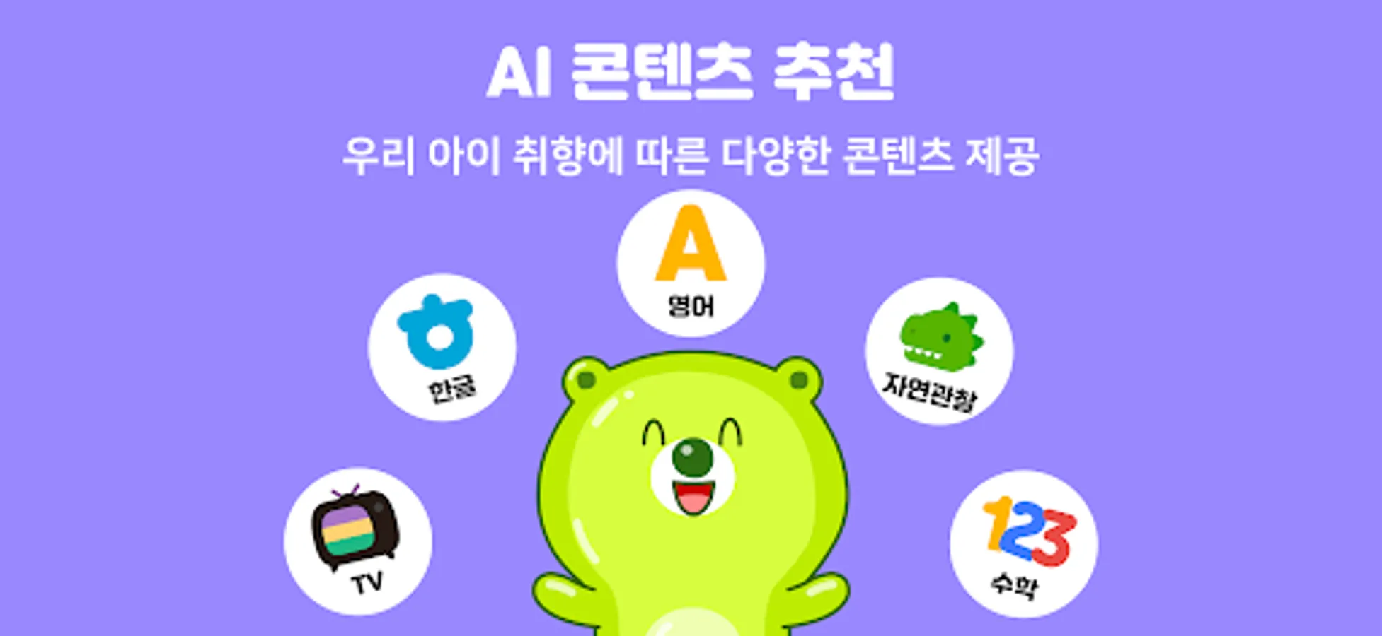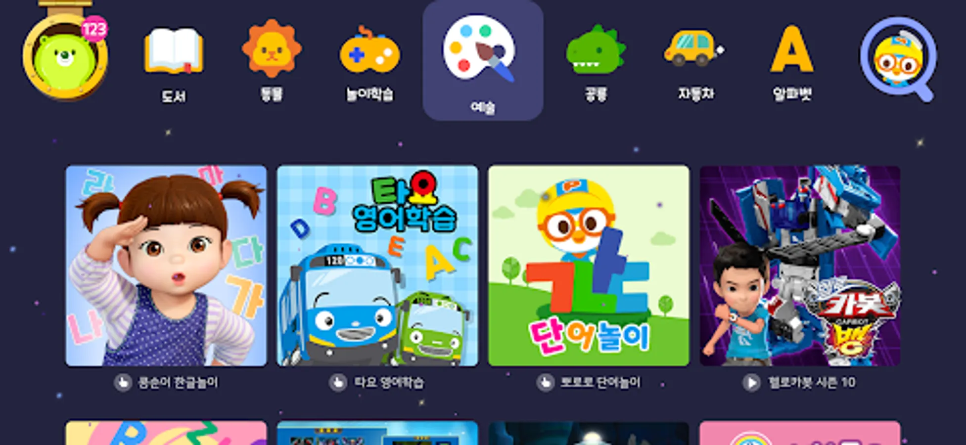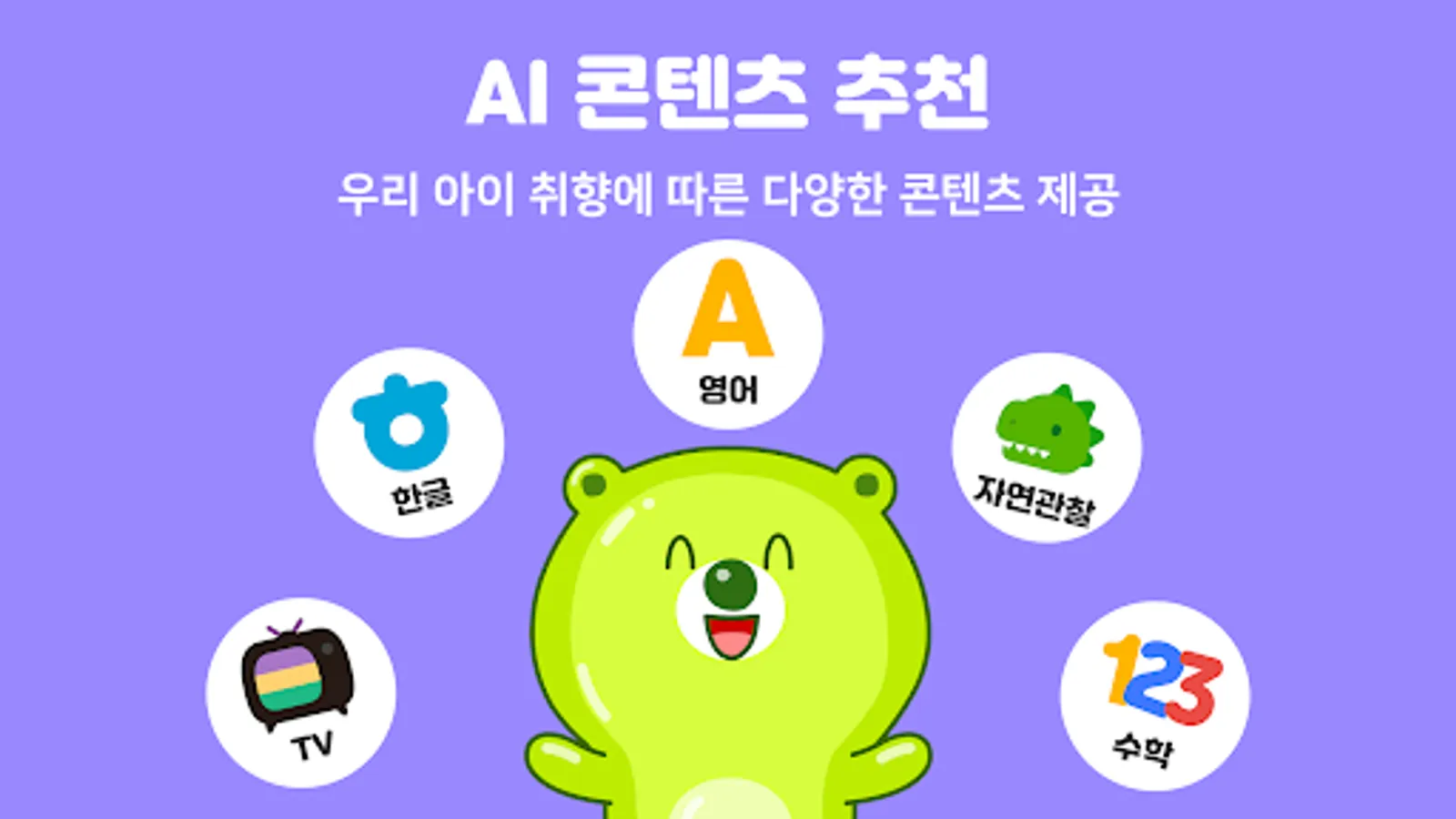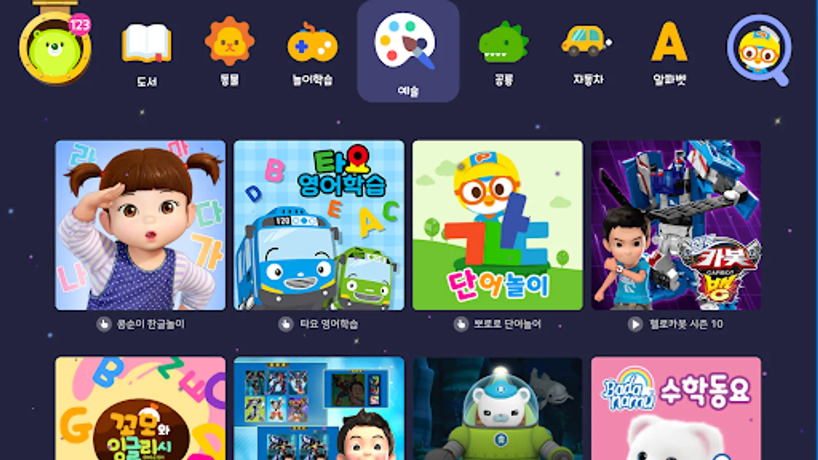 • Hangul, ABC, math, Provides child-friendly design and search function easily divided into categories such as nature observation, dance, books, play learning, and artistic creativity