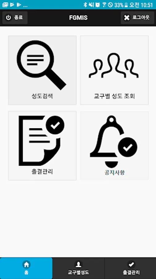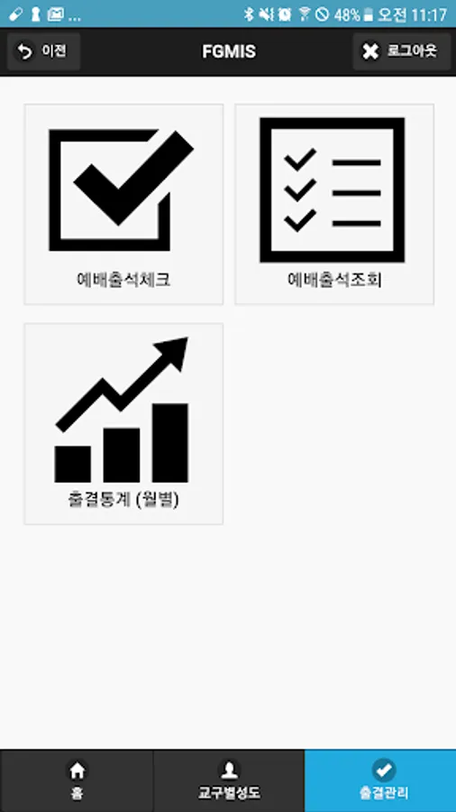 - 성도출결 처리 및 출결통계를 확인 할수 있습니다.