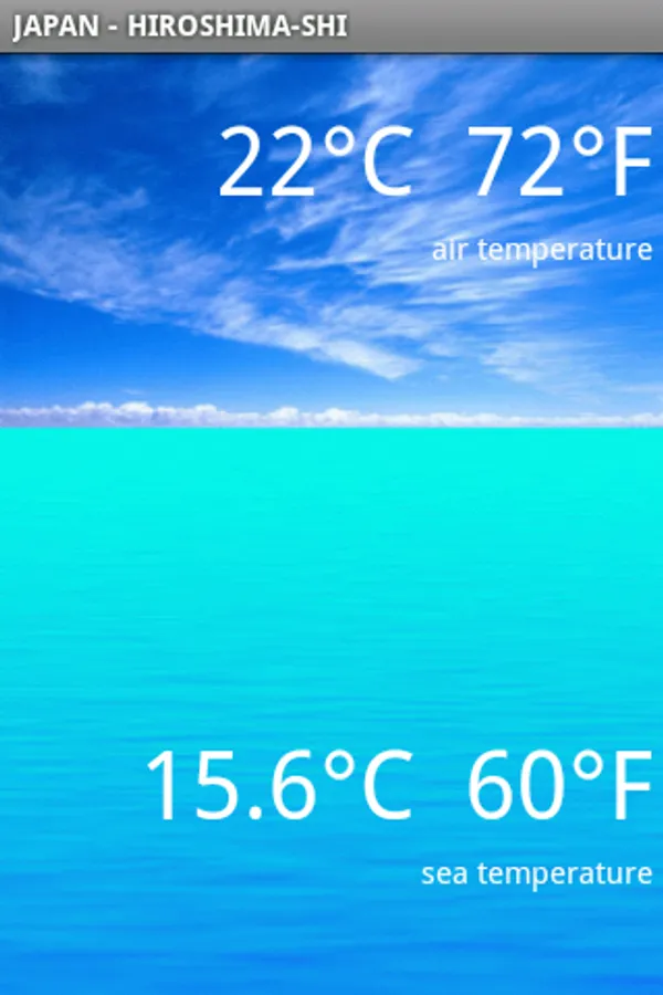 The app "Sea temperature" is intended for all who like to travel to coasts around the world. Here you will find current sea temperatures and air temperatures for 166 countries.