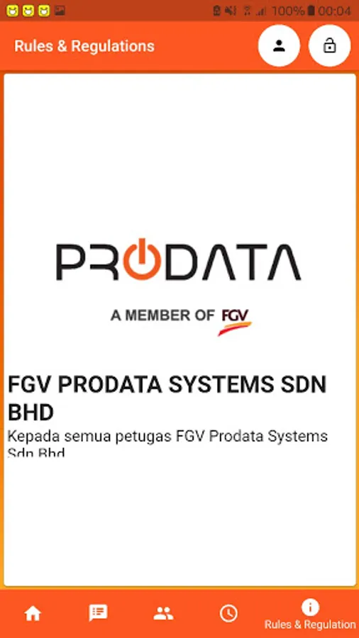 This application for the staff of FGV Prodata to clock in and clock out during working hours in everywhere.