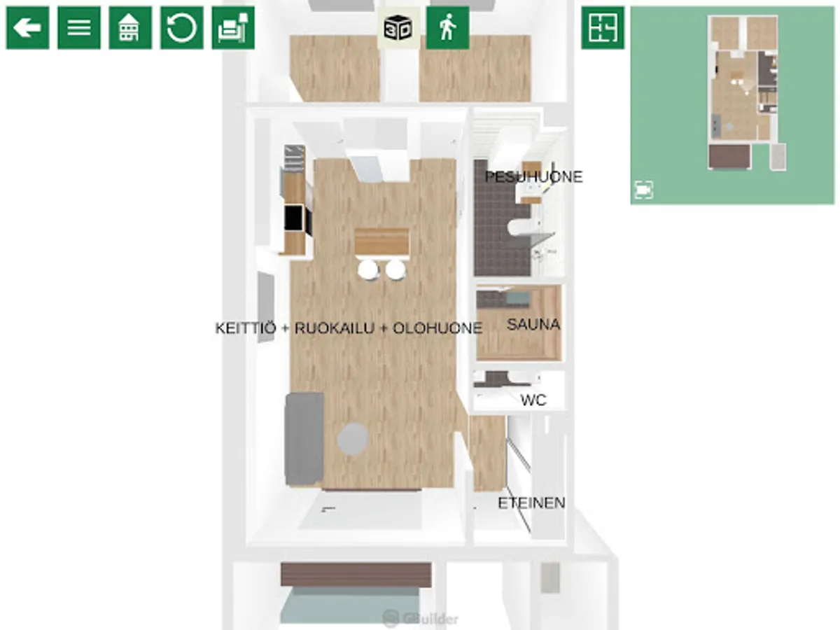 - See your home in 3D. Move around in first person or with a free camera looking at it as it would be when finished.