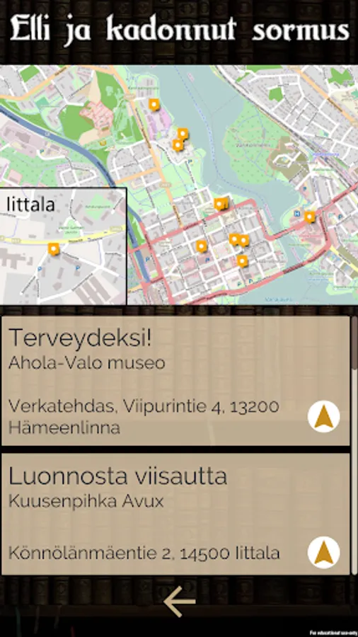 The VIKKE application is a pilot application for the Virtual Cultural Tourism in Kanta-Häme project. More information about the project can be found at https://www.hamk.fi/vikke