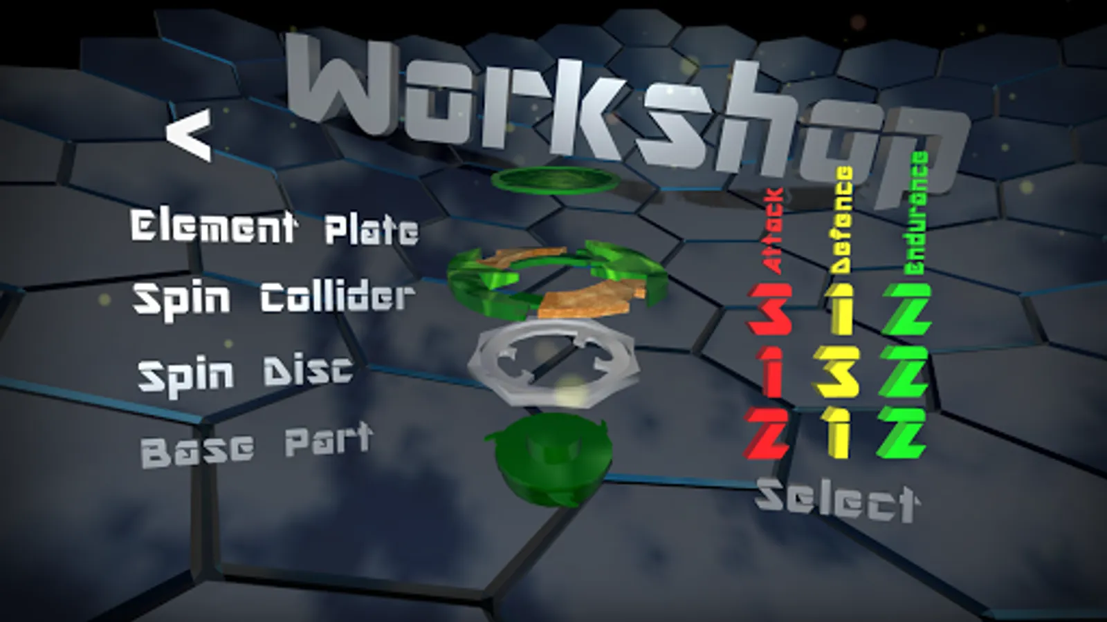 Customize the Spin-Tops with various parts, which have own stats affecting the performance of your Spin-Top. You can also use powerful Special Attacks based on Element Plate.
