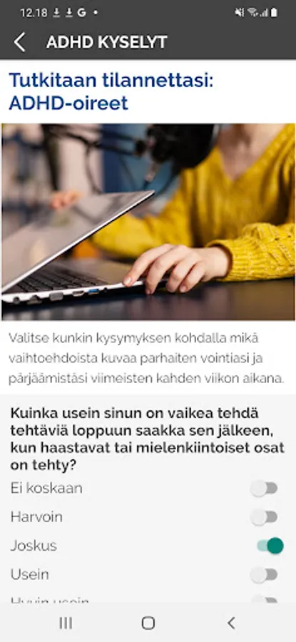 The ADHD Therapy Online ADHD app will help you manage your ADHD symptoms. In online therapy, you will learn to better understand the features of your ADHD and practice ways to manage the problems caused by ADHD. You will be supported by your own online therapist, with whom you can communicate through the app. ADHD Online Therapy is for 16+ year olds who want to expand their toolkit to better manage their ADHD symptoms.
