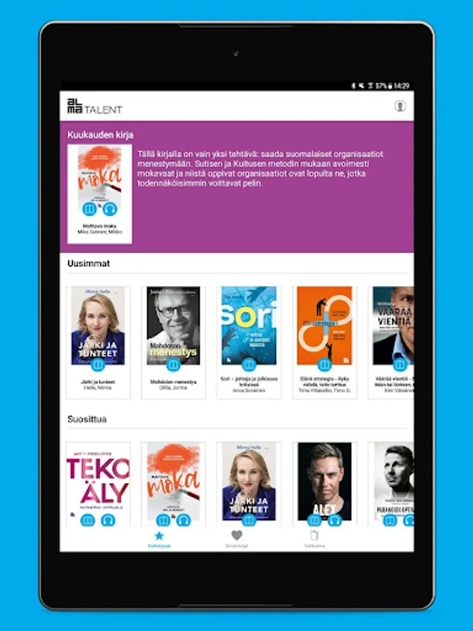 With this service, you will find a unique selection of the latest and most interesting books by the publishers of the largest professional literature in Finland.