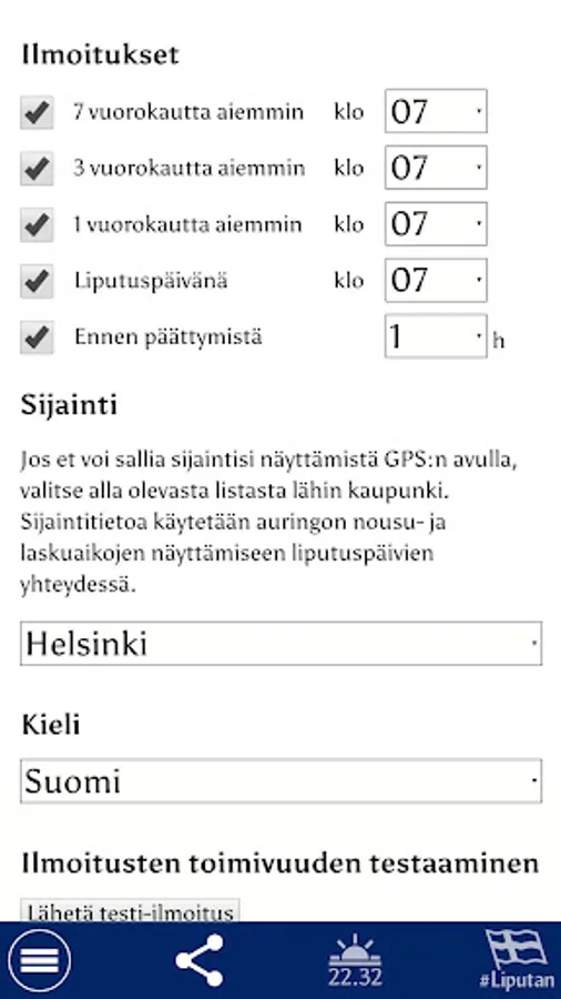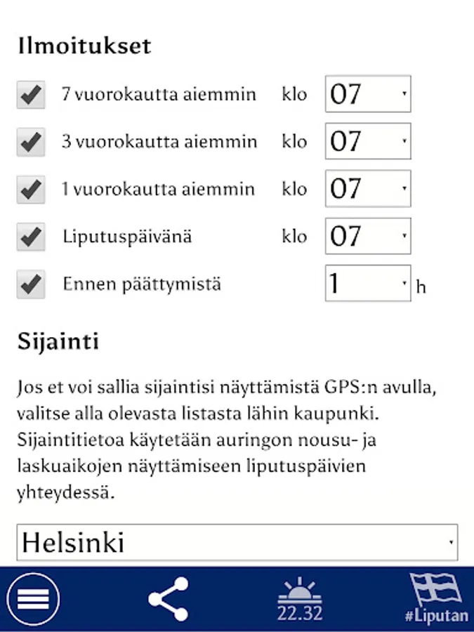There are some rules in Finnish flag flying culture, but in principle flying the flag is a joyful and dignified way of honouring Finnishness. The app is part of the #Liputan campaign of the Ministry of the Interior.