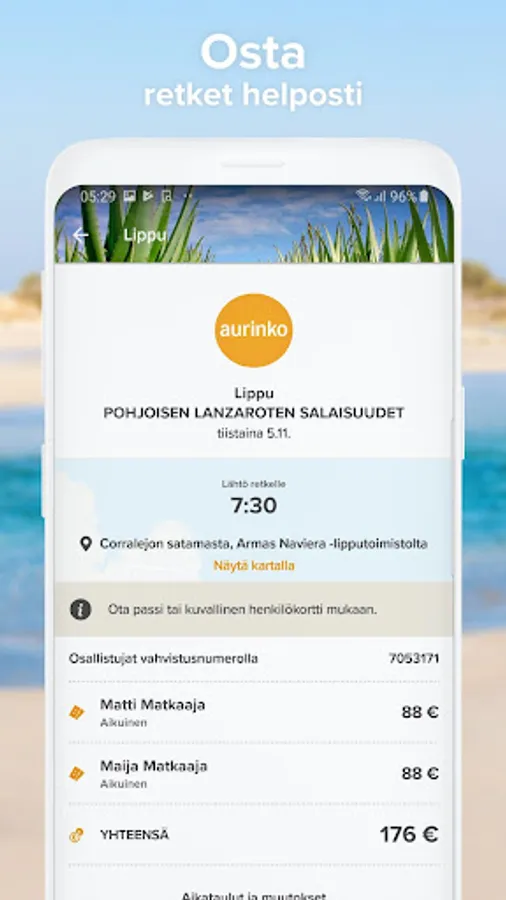 *** The Aurinkomatkat application is not available on the Island Hopping from Santorini special trip or on trips customized at the customer's request. The application is not available on all self-contained City Holidays, you can check on Aurinkomatkat's website whether the application is available in your holiday destination. The application cannot be used by people traveling on group bookings or on flights only. To log in to the application, a Finnish telephone number must be provided with the travel reservation.