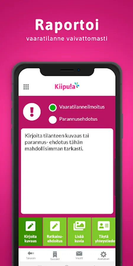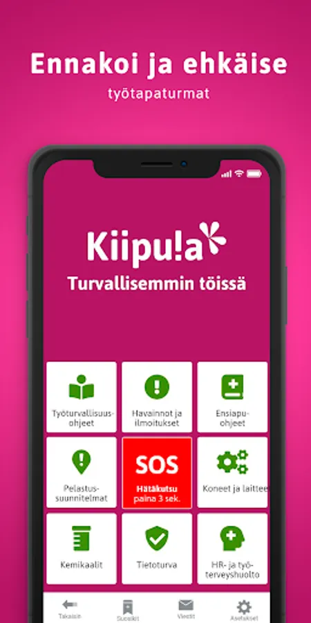 The KiipulaApp mobile application is a tool for improving, developing and maintaining occupational safety. The application makes it easier to anticipate and prevent work-related accidents and makes reporting easier. The app's data feed reaches quickly and keeps users up-to-date everywhere.