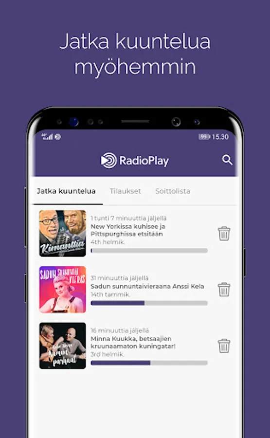 At RadioPlay, you can find versatile coverage of Finland's most popular radio channels, programs and podcasts. The ad-free RadioPlay Premium service is also available. You can connect the app to Chromecast or Android Auto.