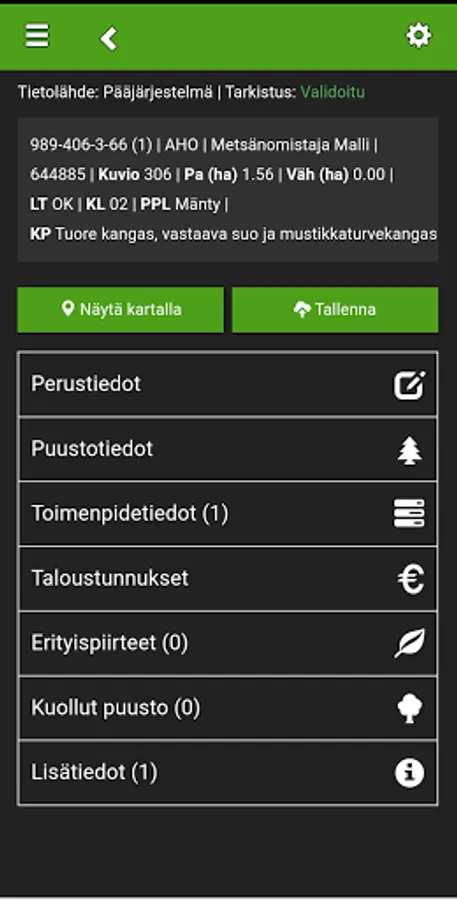 Foresta Terrain is a professional mobile application for collecting forest data and processing pattern data. It is an add-on to Foresta's forest information system. The user can edit pattern information directly in the forest, mark important items or storage locations, and save the route they have taken. If necessary, the Foresta Terrain application can be used without a network connection.