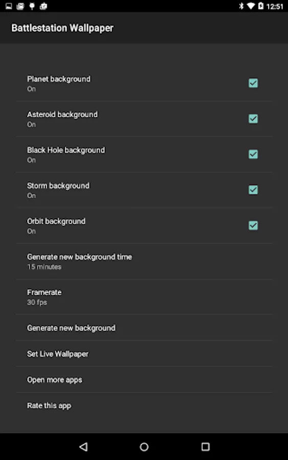 The Battlevoid universe is rich and wast, now you have the possibility to enjoy the stunning space backgrounds from Battlevoid: Harbinger on your device as a live wallpaper. Experience Black holes, Electromagnetic storms, asteroid fields and much more. Randomly generated, giving you a multitude of wallpapers to enjoy.
