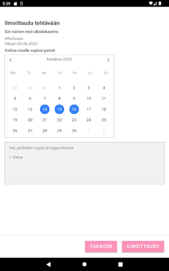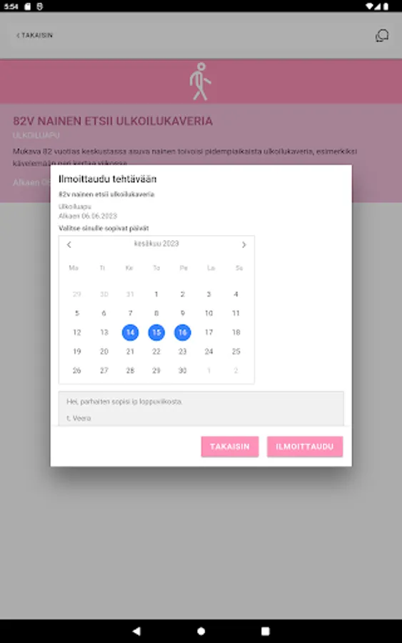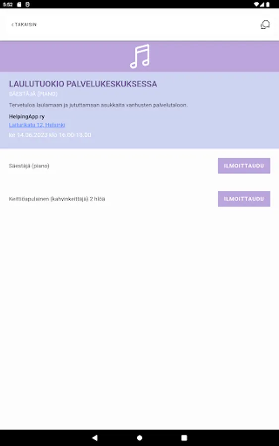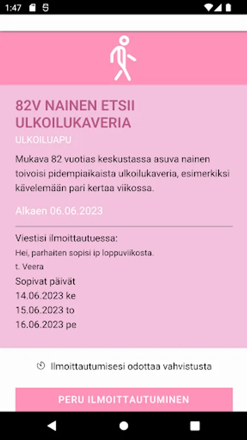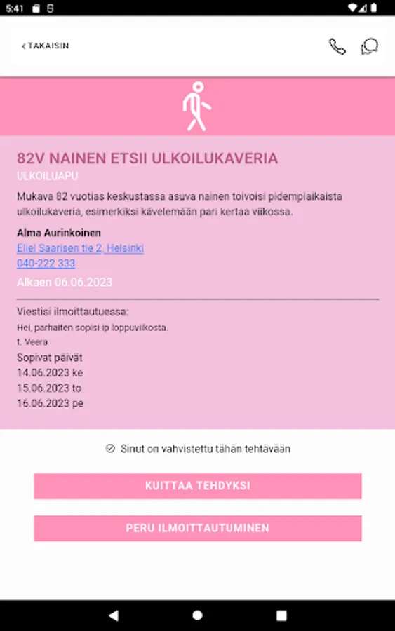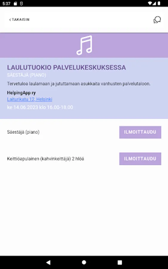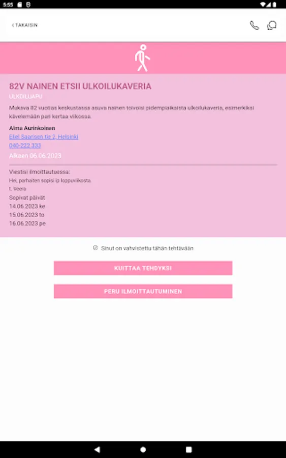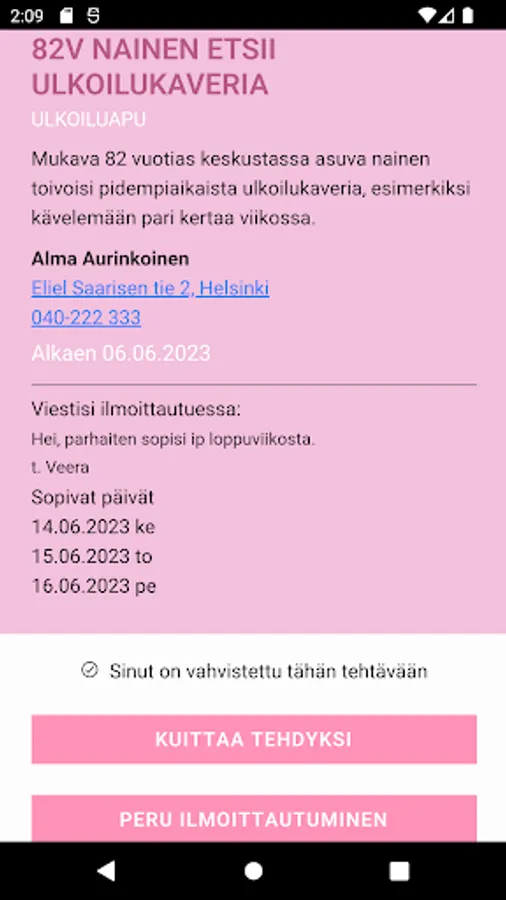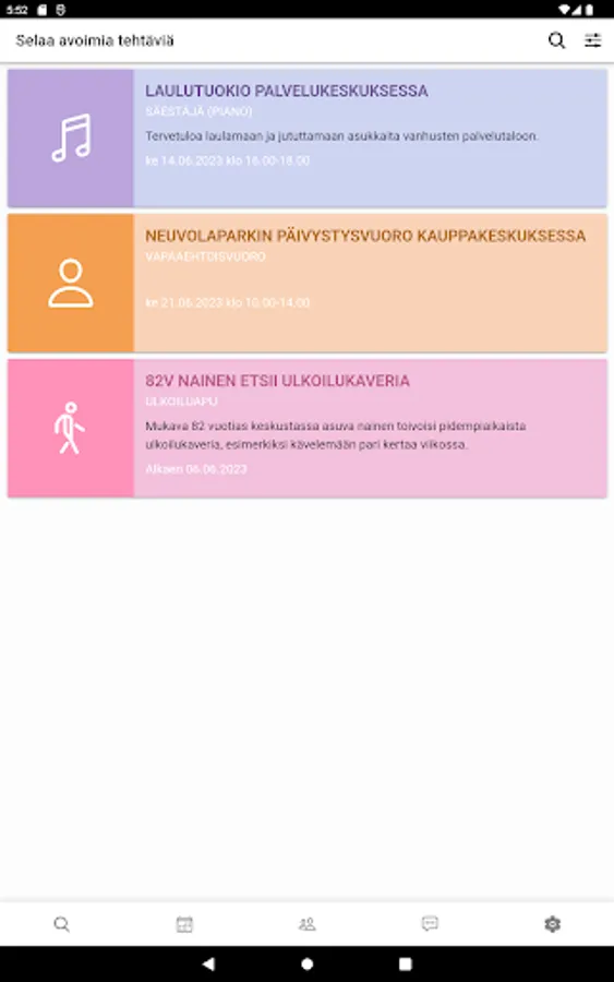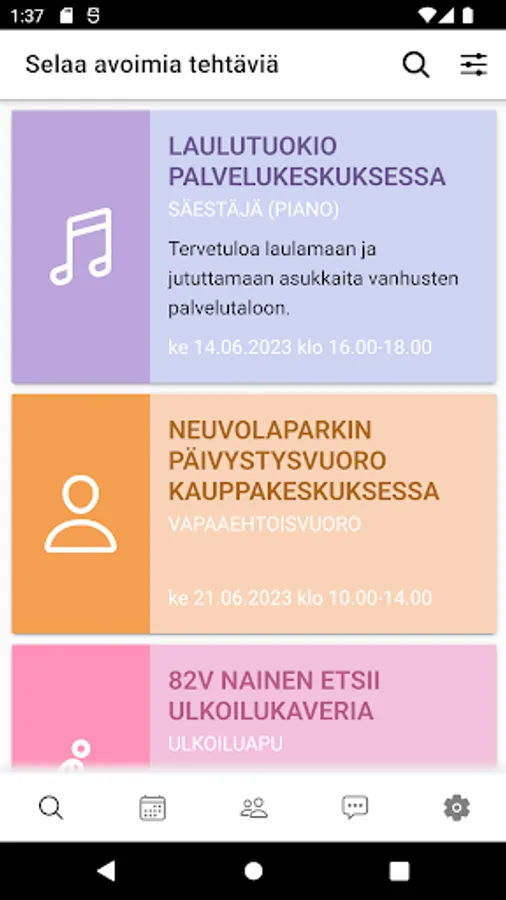 With HelpingApp the volunteers can browse open volunteering tasks and sign up for them. The tasks can be configured so that registrations are confirmed automatically or that the coordinators need to confirm them, after which volunteers will get a push notification to the app.