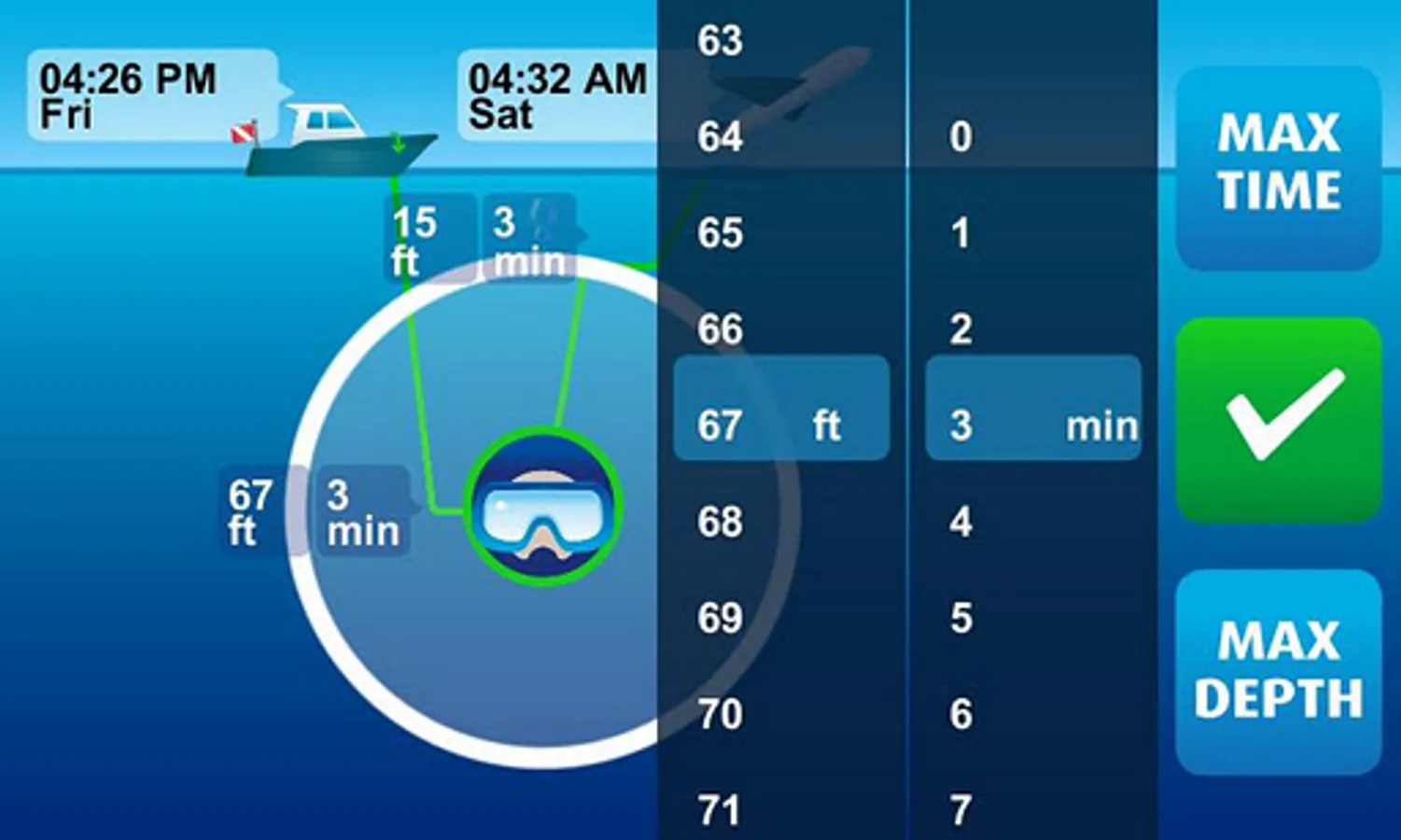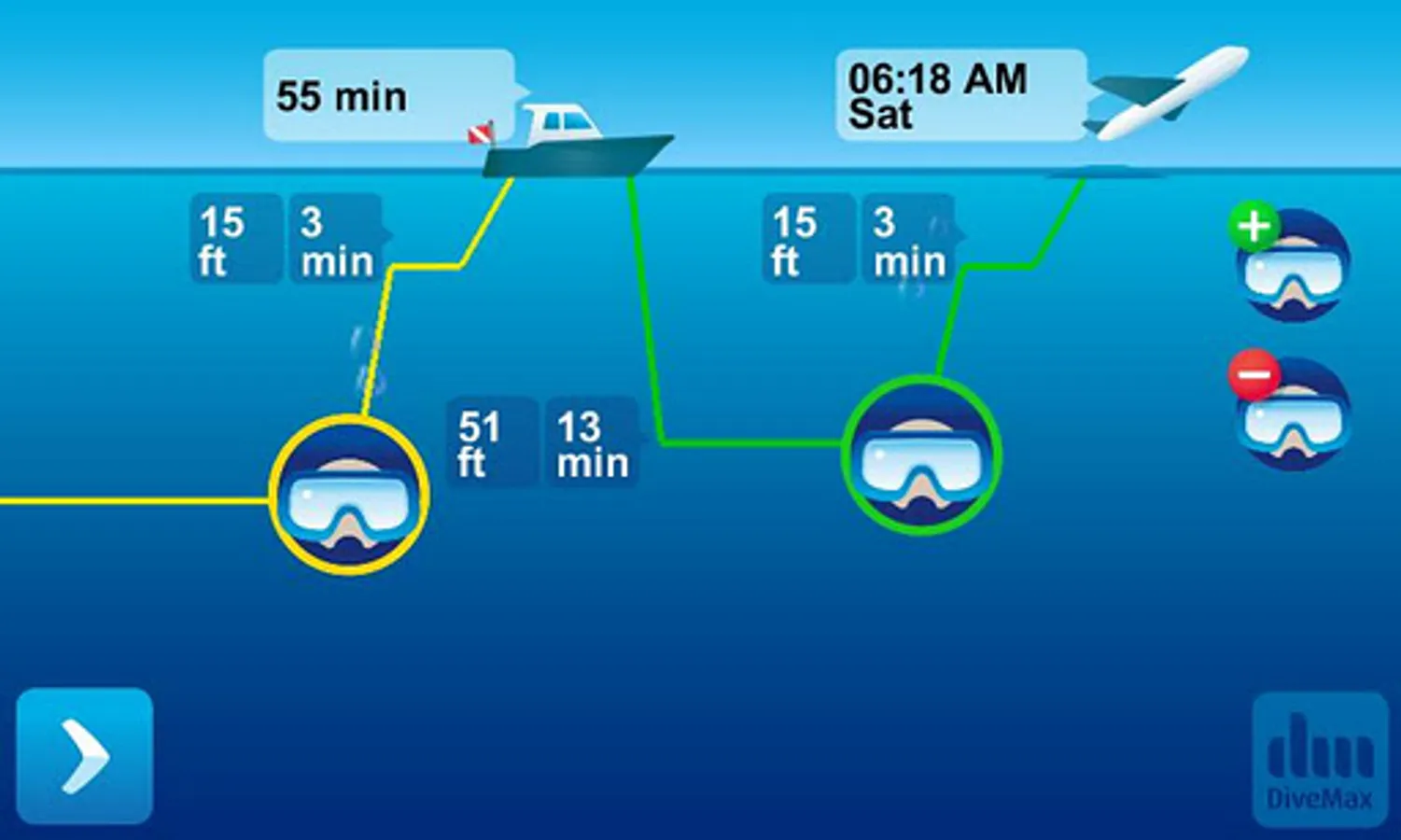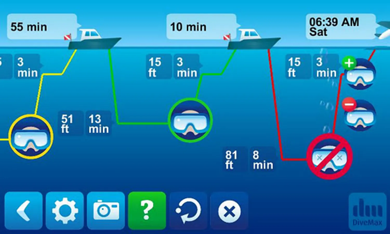 Simply touch the diver with your finger to move him; DiveMax immediately calculates the effects in real time and shows them in an informative graph. DiveMax also clearly indicates when your plan is safe and executable.