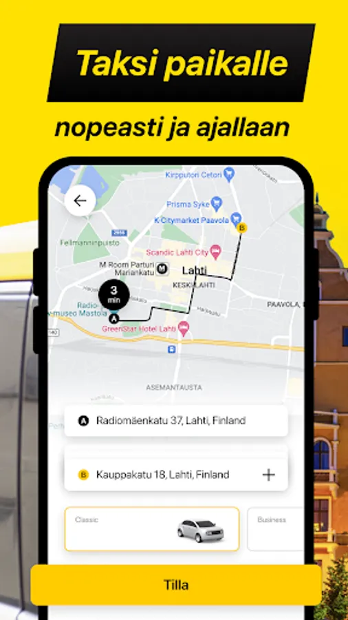 Lahti taksi is a taxi booking app that provides local taxi rides for travelers and general riders needing quality ground transportation. Lahden taksi connects users with licensed drivers that are available to take you around the region.