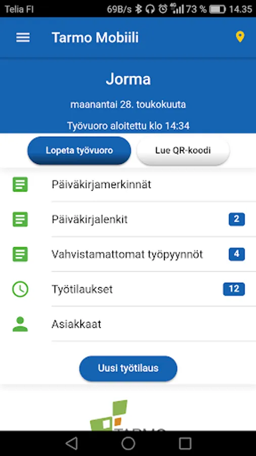 Use of the application requires a valid agreement to use the software Tarmo Finnish Lake Property Consultants Oy. Additional information www.tarmok.fi or tuki@tarmok.fi