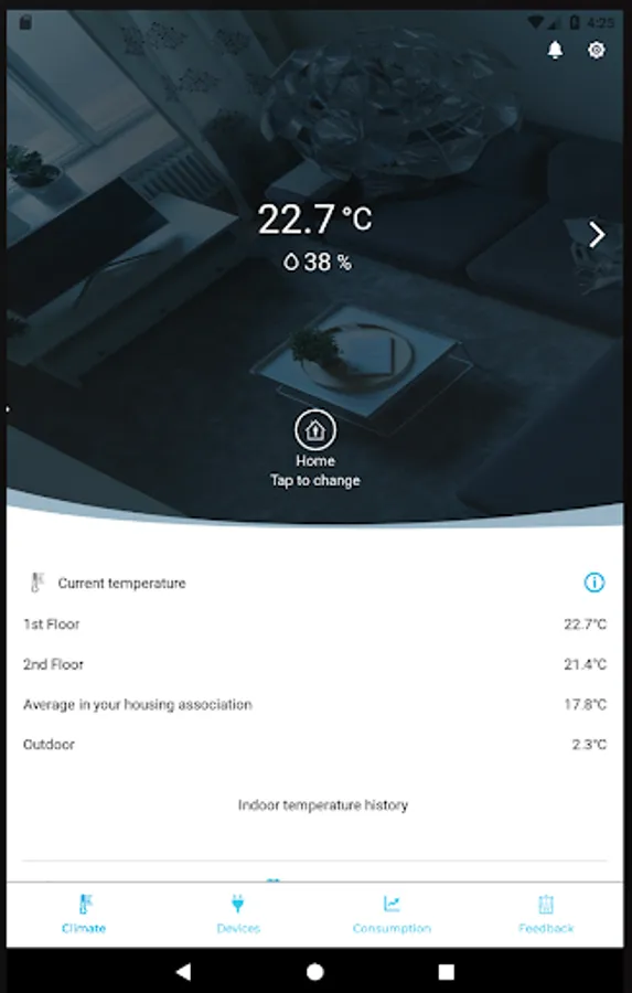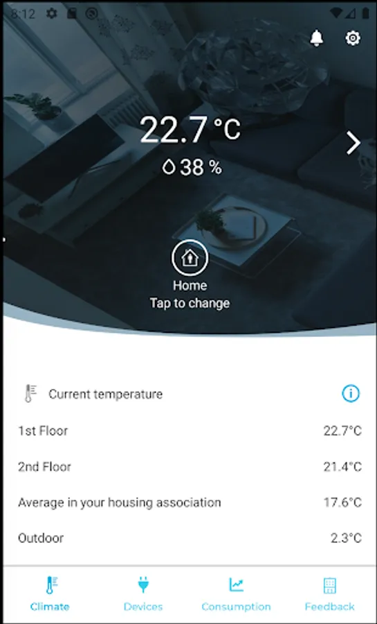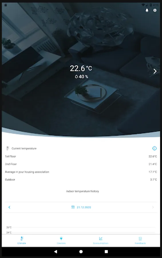 Depending on the services selected for your housing association, you can monitor and compare, for example, your home's temperature, energy and water consumption. In addition, you can receive water leak, fire and burglary alarms. And of course, control your home's smart devices.