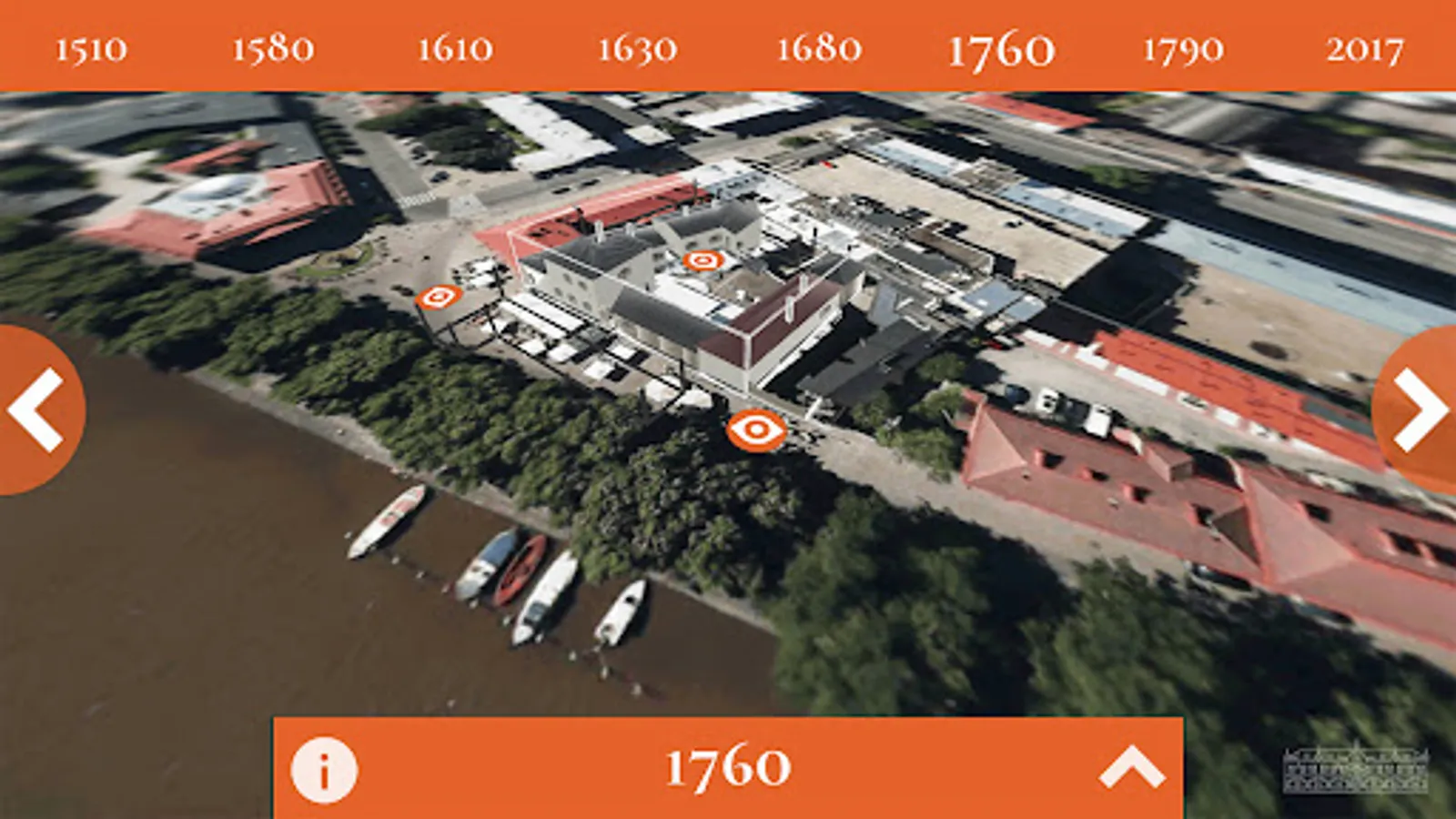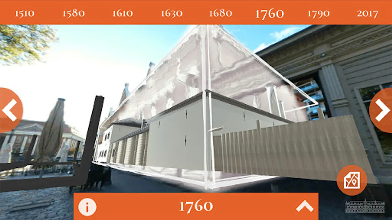 From the app, you can see the stages of the house’s history from both a bird’s eye view and street level. When visiting in front of the house, you can place history on top of the actual house in the space of augmented reality.