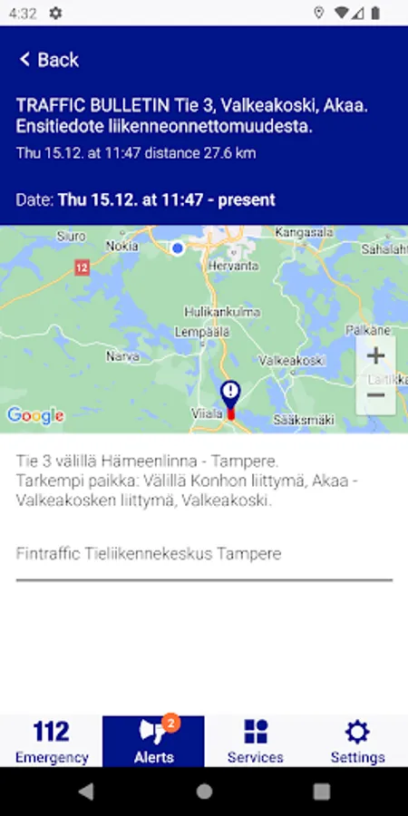 The 112 Suomi mobile application is one of the statutory channels for public warnings. The app provides you with regional public safety alerts and notices based on the location of your phone. The public safety alerts are written and issued by the relevant authorities.
