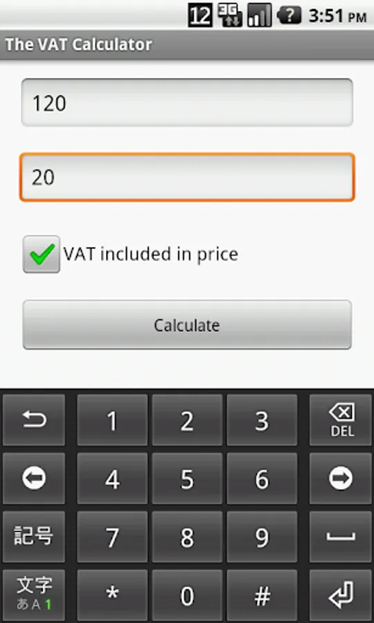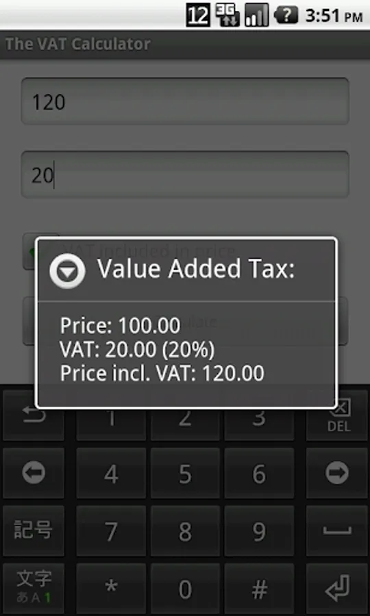 Calculates VAT (value added tax) when given VAT percentage and price.