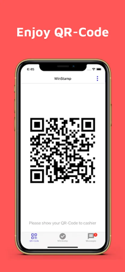 2- The customer downloads the "WinStamp" app and has a unique QR code.