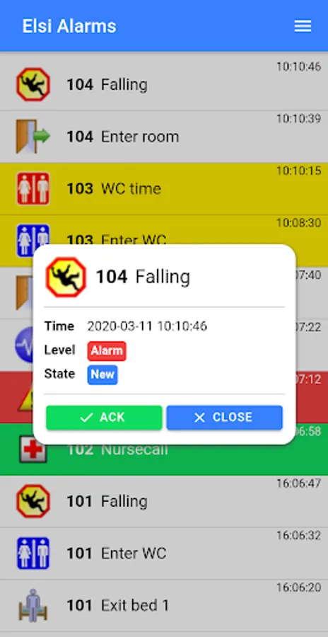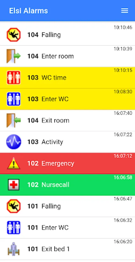 Elsi Care Solution for Android enables the use of Android smartphones to receive alarms from MariCare's Elsi SmartFloor and eLsa Care Home systems. It displays a list of active alarms and allows the nursing staff to acknowledge the alarms and issue call requests.