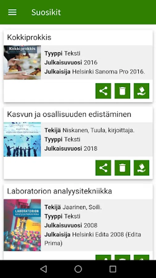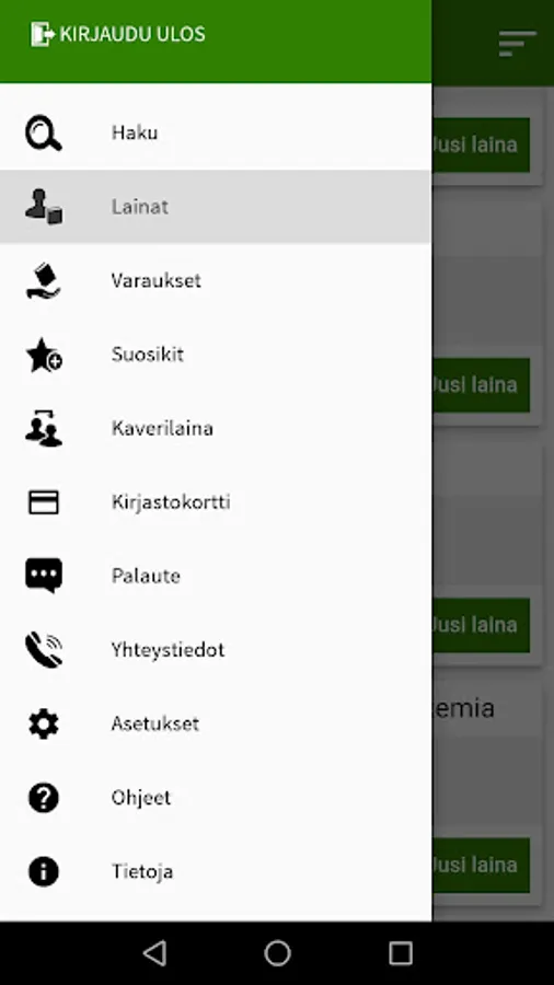 TokiON is a mobile service for TOKI library customers. The app allows you to check and renew loans, make bookings, borrow books directly from a friend, add interesting material to your favorite list, and check library opening hours and contacts. You can also use the application as a library card.