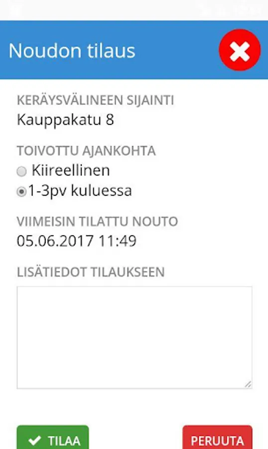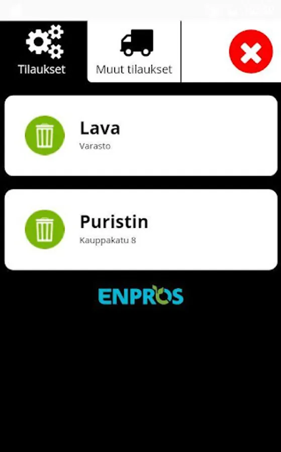 The client application, which can do a variety of keräysväline- / transport orders ZeroWaste system