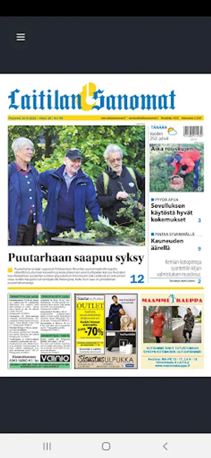 In the Laitilan Sanomat application, the news and topics of the day are always with you. You read the view magazine like a paper magazine, and in the app you can select the most interesting news from the news feed.