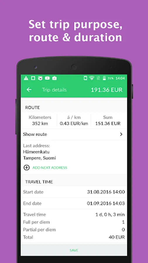 With eTasku, you can scan your receipts to accounting with the push of a button and create travel expense reports in seconds.