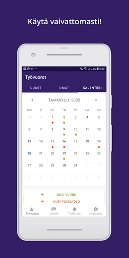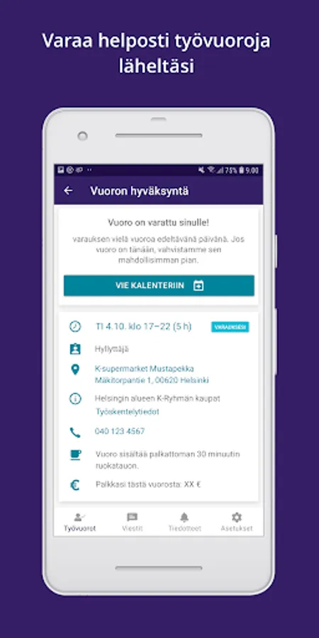 Get notifications of free shifts in your phone as handy push notifications. You can book suitable shifts quickly and reliably with the app.