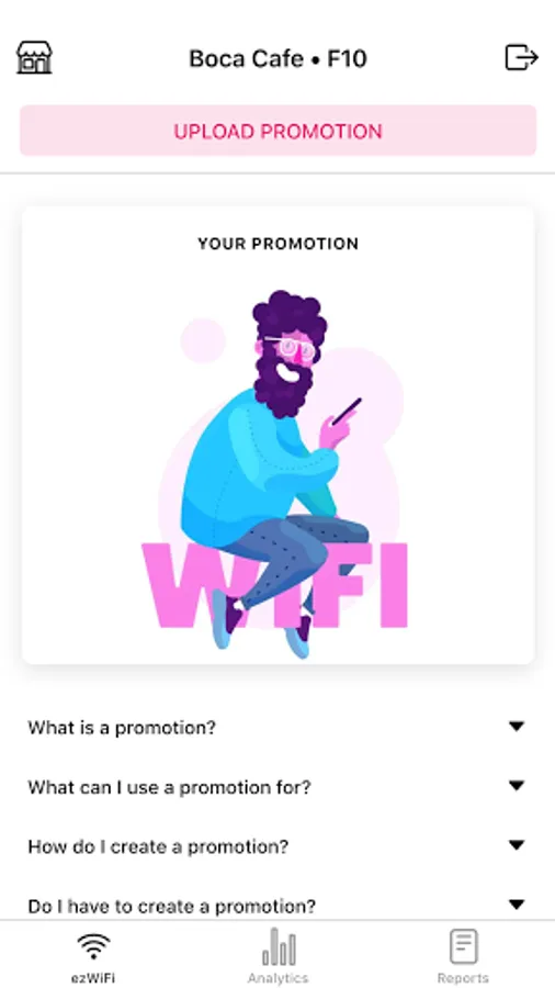 Access all your ezWiFi promotions, analytics and reports from your Android device.