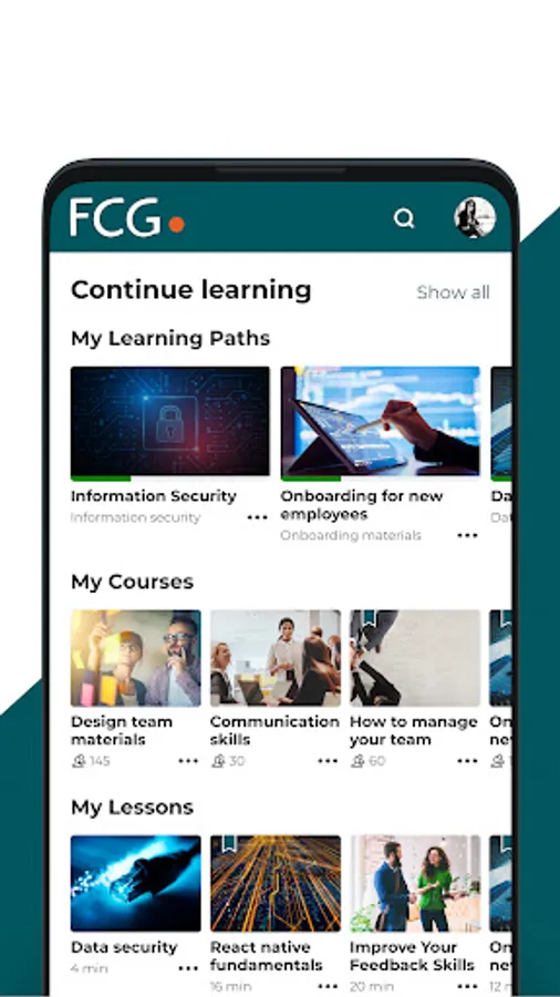 FCG Digikanava brings together all of Finnish Consulting Group's digital training services on the same platform behind a single logo. FCG Digikanava is a time- and place-independent e-learning platform based on micro-learning, with content production by top experts in their fields. The FCG Digital Channel mobile application keeps learning at your fingertips. Take advantage of transitions and trips, moments of waiting, or even morning activities while watching and listening to interesting micro-content! You decide when, where and how. FCG Digital Channel - Learning on your own terms.
