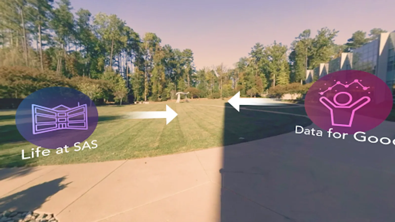 Take a virtual tour of our campus in Cary, North Carolina, and learn more about what we do at SAS. Users have an option of viewing the experience with a VR headset or watching an interactive, 360 video with their mobile device.