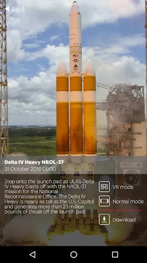 Take a trip to space in virtual reality by downloading the ULA360 app and using your smartphone with or without VR viewers.