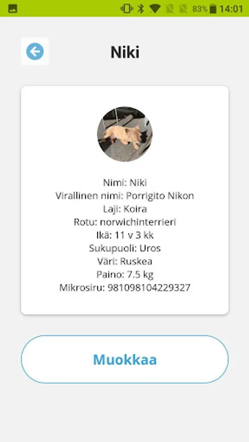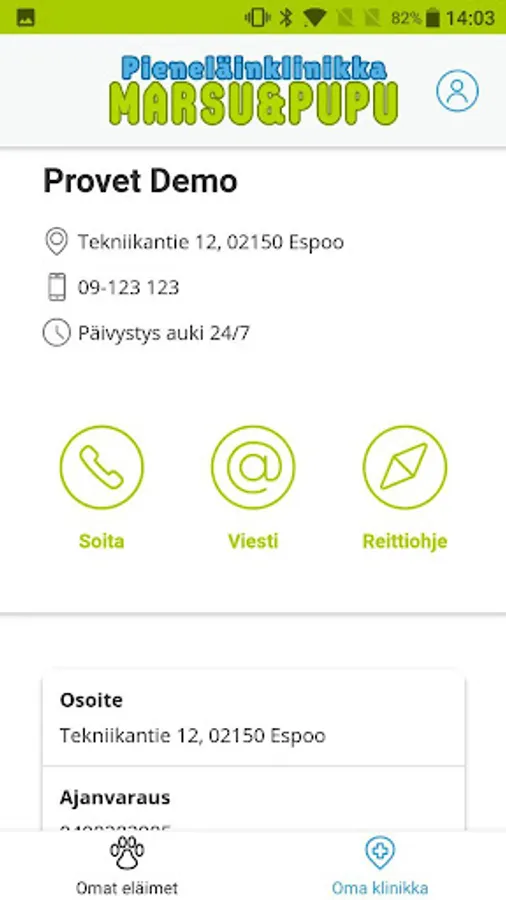 Mobile Health Card offers a small animal clinics customers the ability to watch their pet care information and to make appointments easily clinics. For example, you can easily check the vaccinations up to date, follow-up care instructions, as well as laboratory results. App, you can also record your own notes on animal care as well as save your pet's health card, a picture of the animal. Login takes place potilastietokantaamme to inform the telephone number to which the SMS message is sent to the application password to log in.