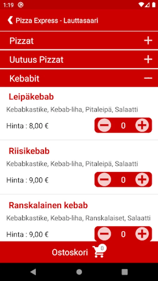 Order pizzas and kebabs as pick-up or home delivery. Our offerings include Pizzas, Kebabs, Clips, Steaks, Chicken Dishes, Chicken Cakes, Falafels, Burgers, Salads and Beverages.