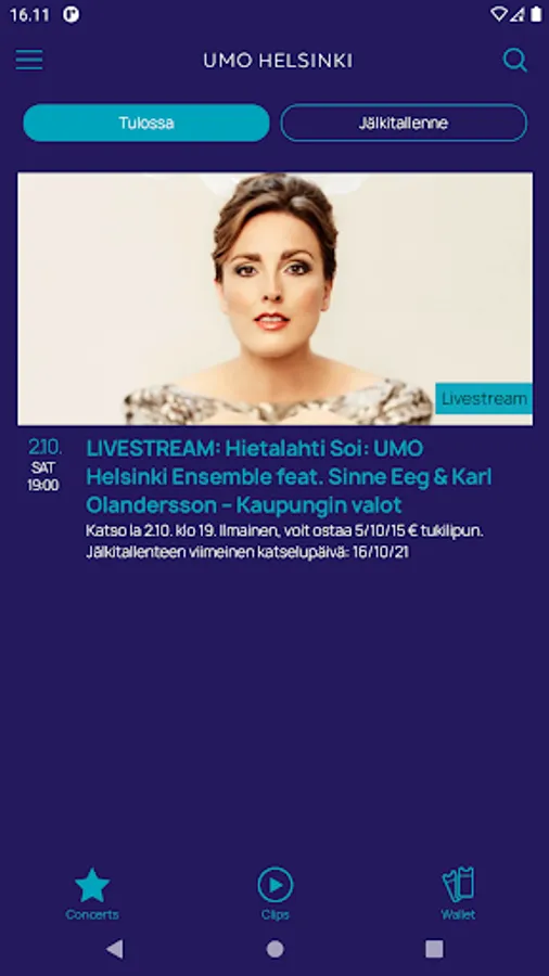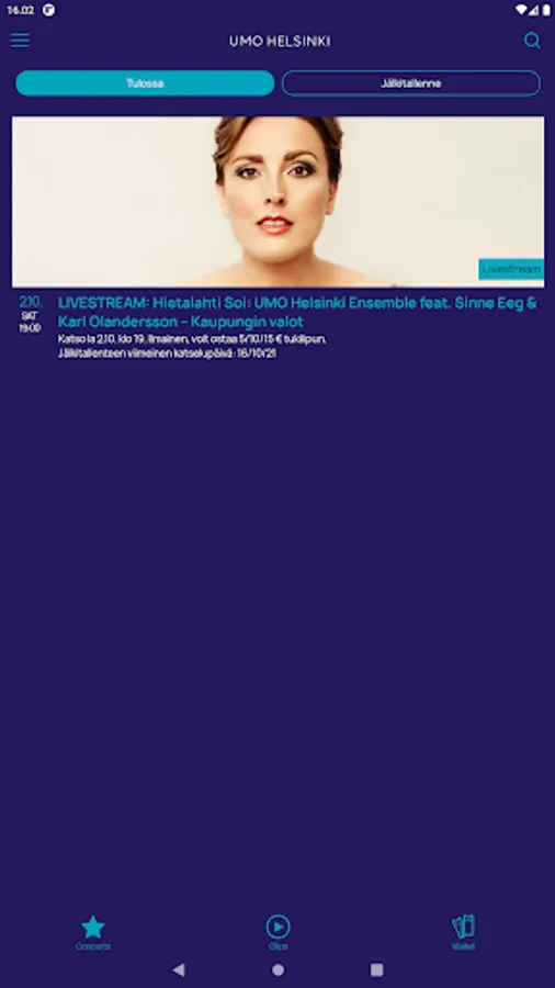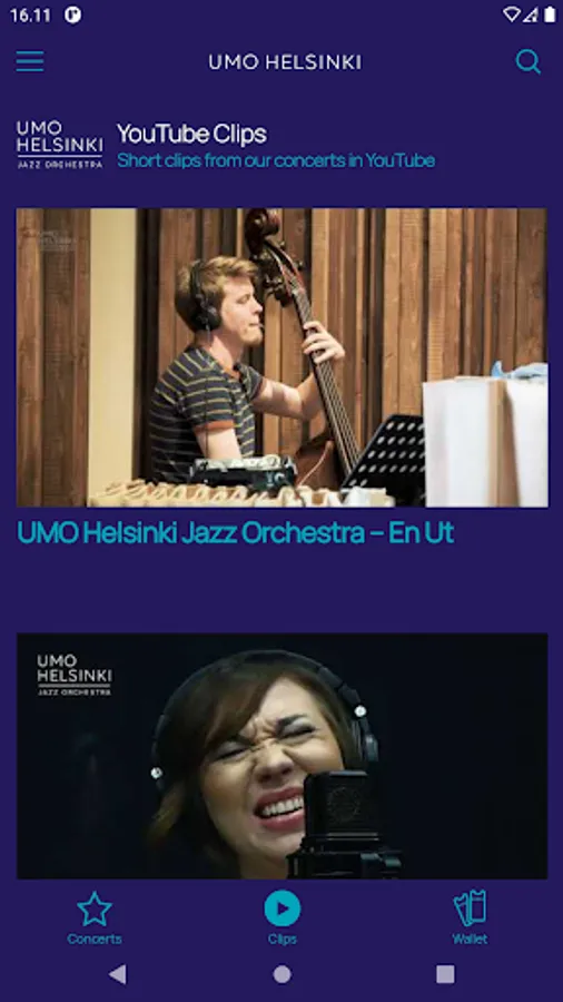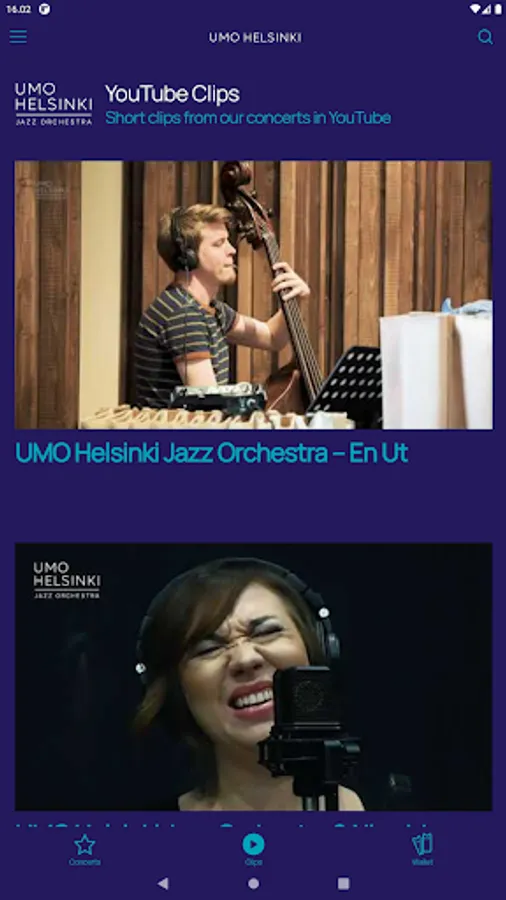 The application brings the UMO Helsinki Jazz Orchestra’s concerts on smart devices. With the application, you can watch and listen to concerts both as livestream and on-demand.