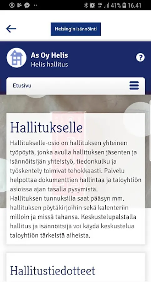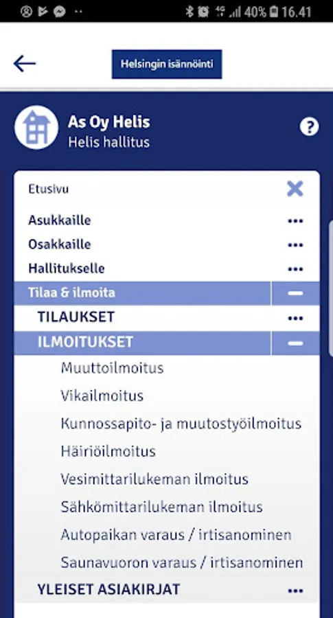 We offer you a ubiquitous opportunity to obtain information and make announcements, and orders for service, the isännöitsijätoimistollesi. EServices opportunity to complement personalized service.