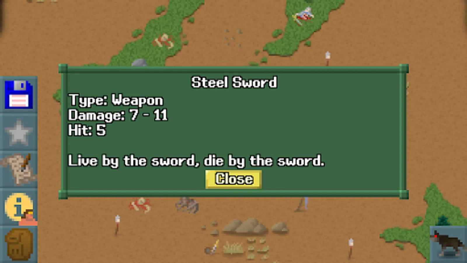 You play as Lance Pixelot, an old skool pixel barbarian in a roguelike environment. Turn based battles await you! Explore dungeons, villages and towns. Try to survive alone, or find some nice NPC to join your party.