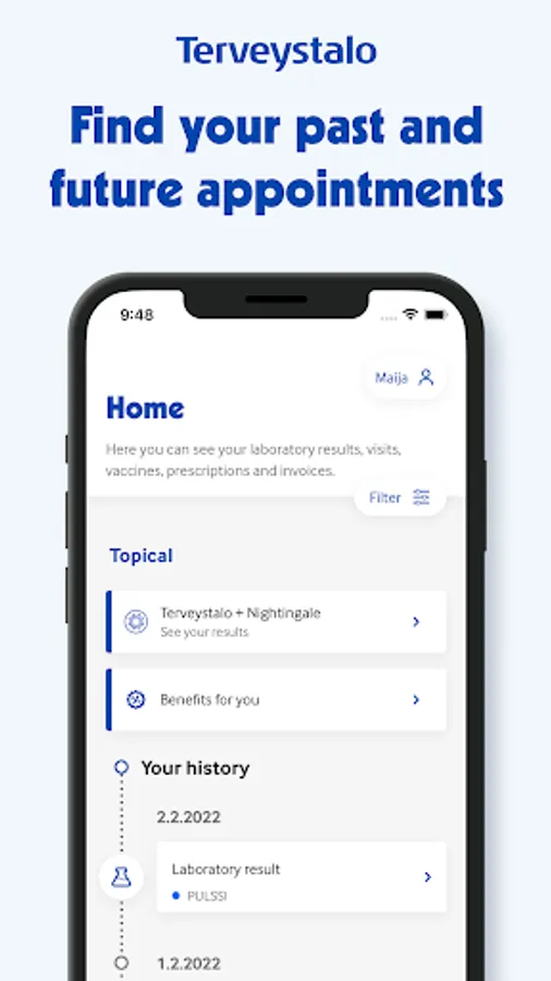 The application provides you with quick access to your health information. Read specialists’ entries and check your lab results, prescriptions, or vaccinations.