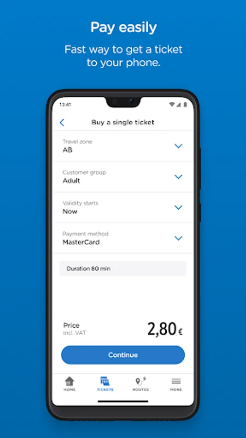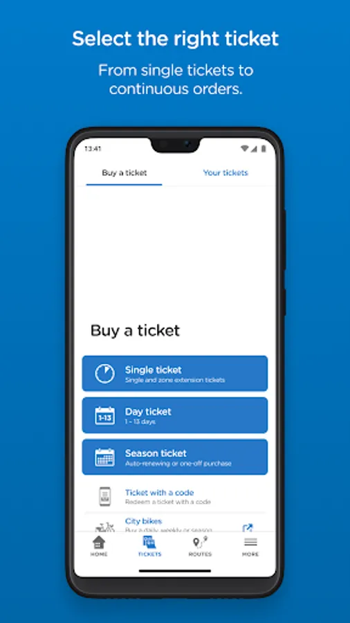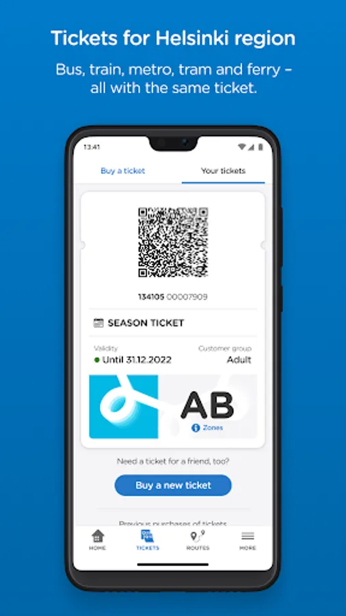 With the HSL app you can buy tickets for Helsinki region public transport, find the best routes and get targeted traffic information. In the HSL app you will find e.g. single, day and season tickets for both adults and children. Bus, train, metro, tram and ferry – all with the same app. You can pay easily e.g. with a payment card.
