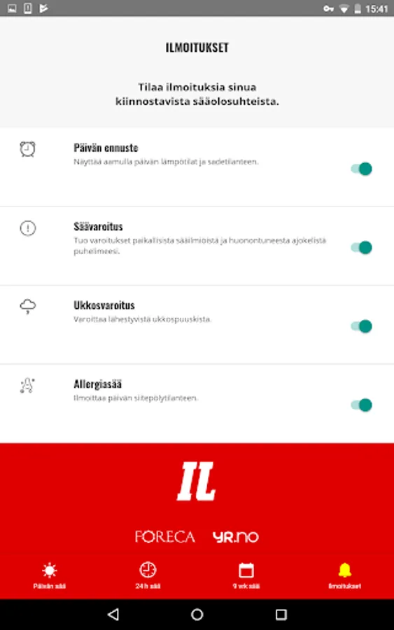 The best weather is Finland's largest and most advanced weather application - an application has everything you will ever need for meteorological services! The application you see on the basis of time of up to three different service weather forecast for your location or the local level both in Finland and abroad. In addition, you can order a handy Weather Notifications such as today's weather as well as weather and allergy warnings, do not let the weather surprise you!