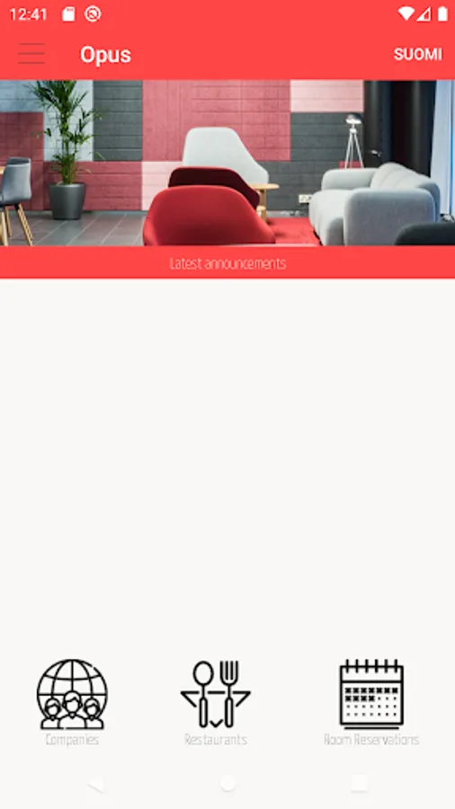 The Opus Business Park app allows you to check the latest announcements, menus and conference room availability directly from your phone.
