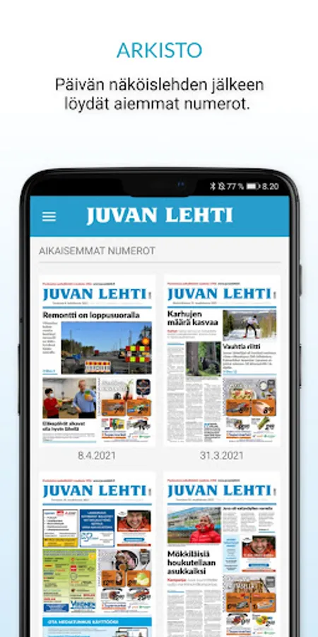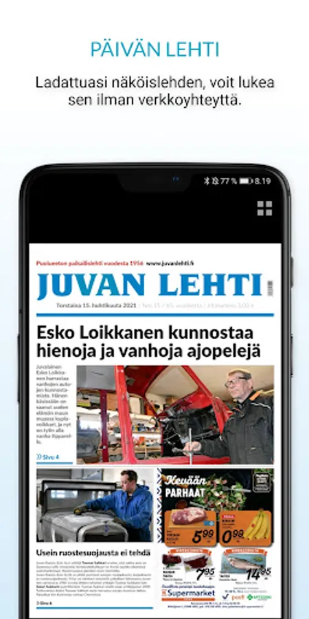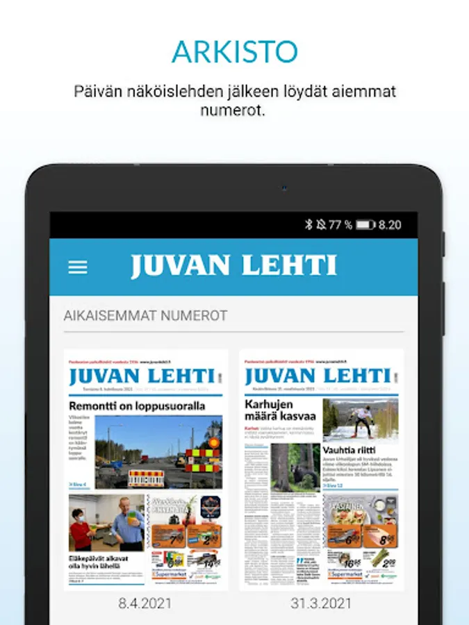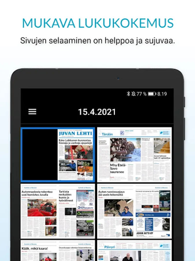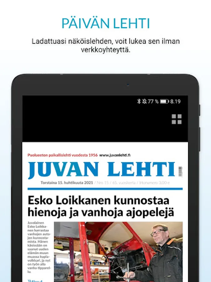 The application includes the daily magazine with its attachments as well as a digital magazine archive. You can also read magazines you download to the application without an online connection.